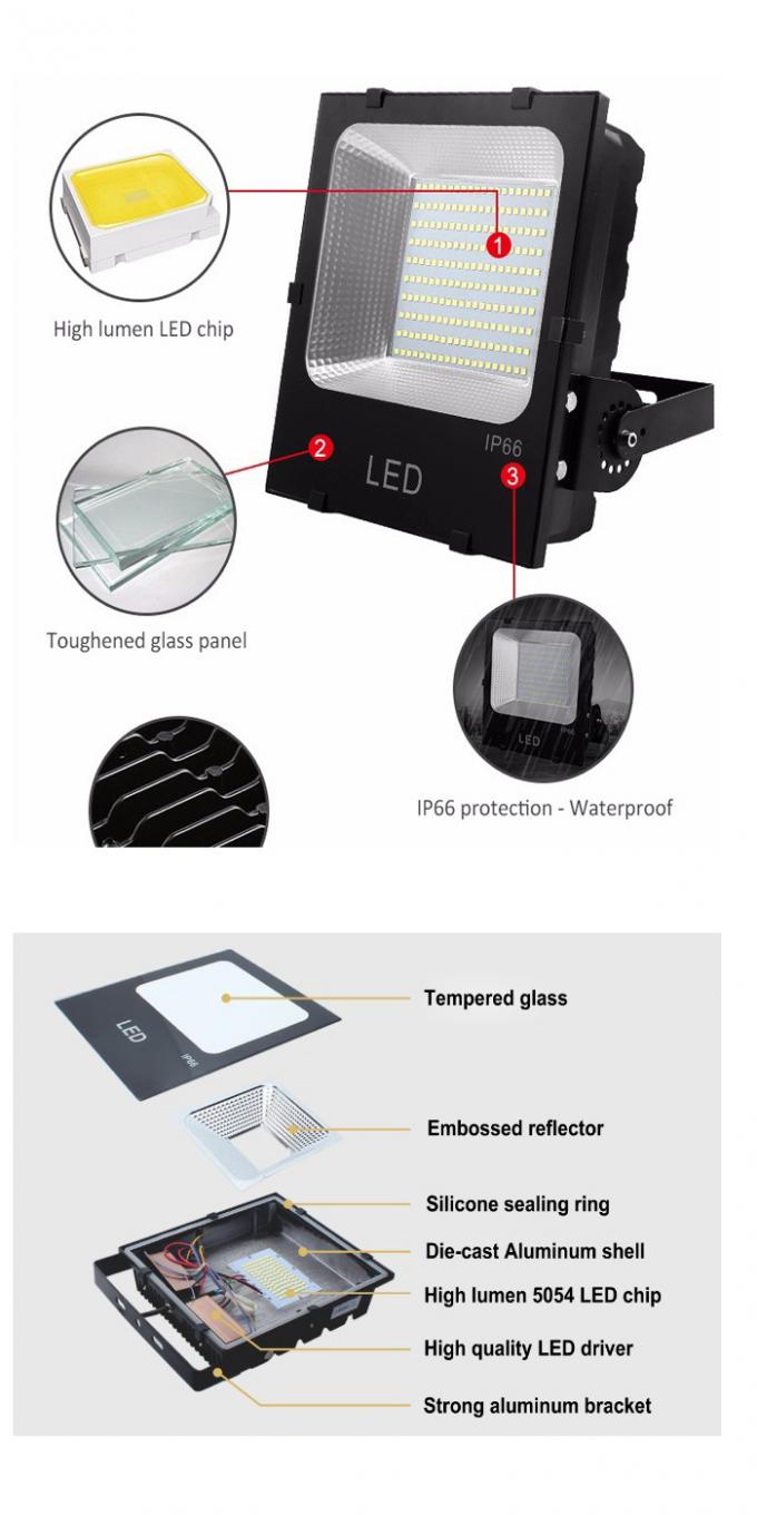| 300W | Die-cast aluminum | 85-265V | 2700K-6500K | 50000hours | IP 65 | 120° |